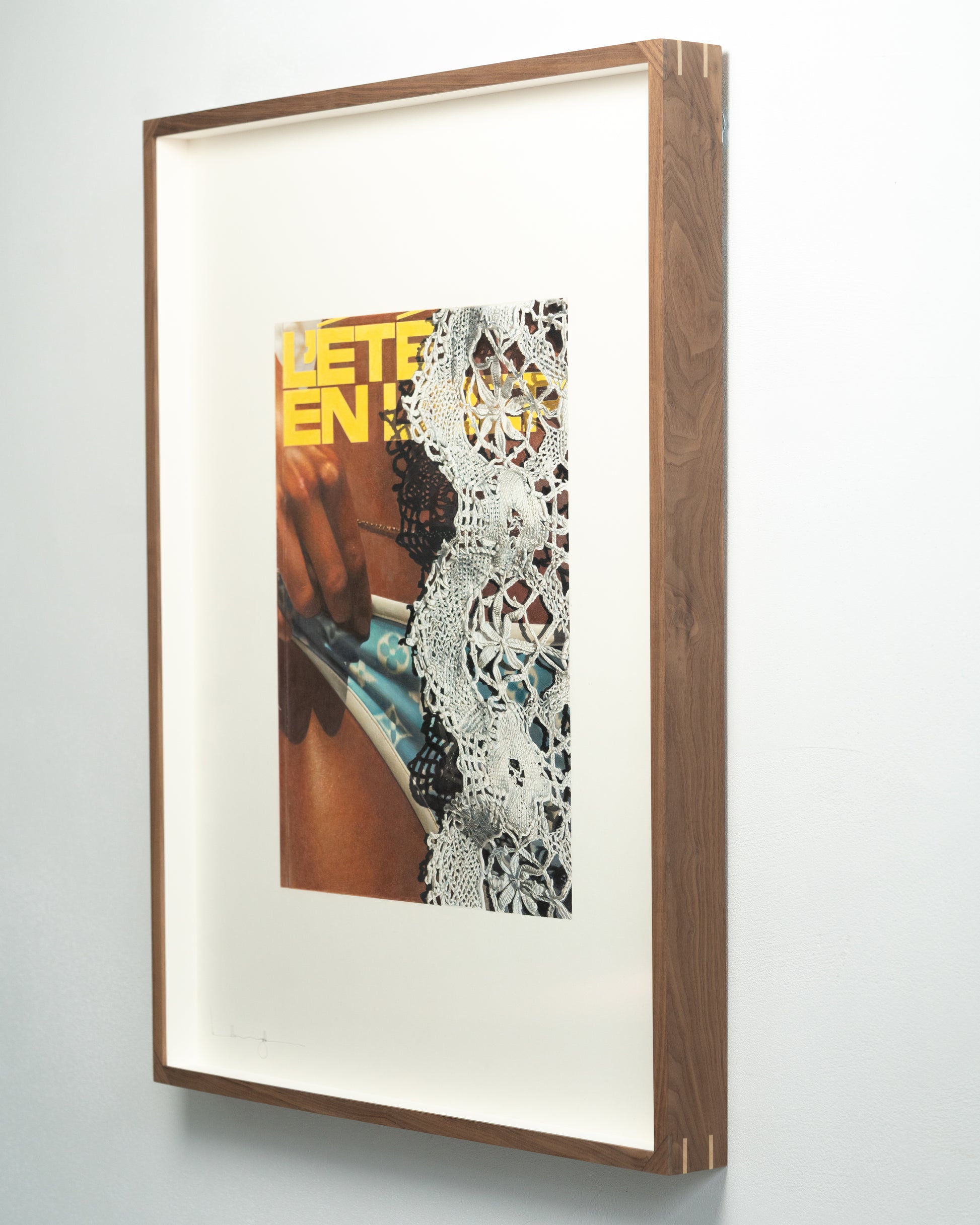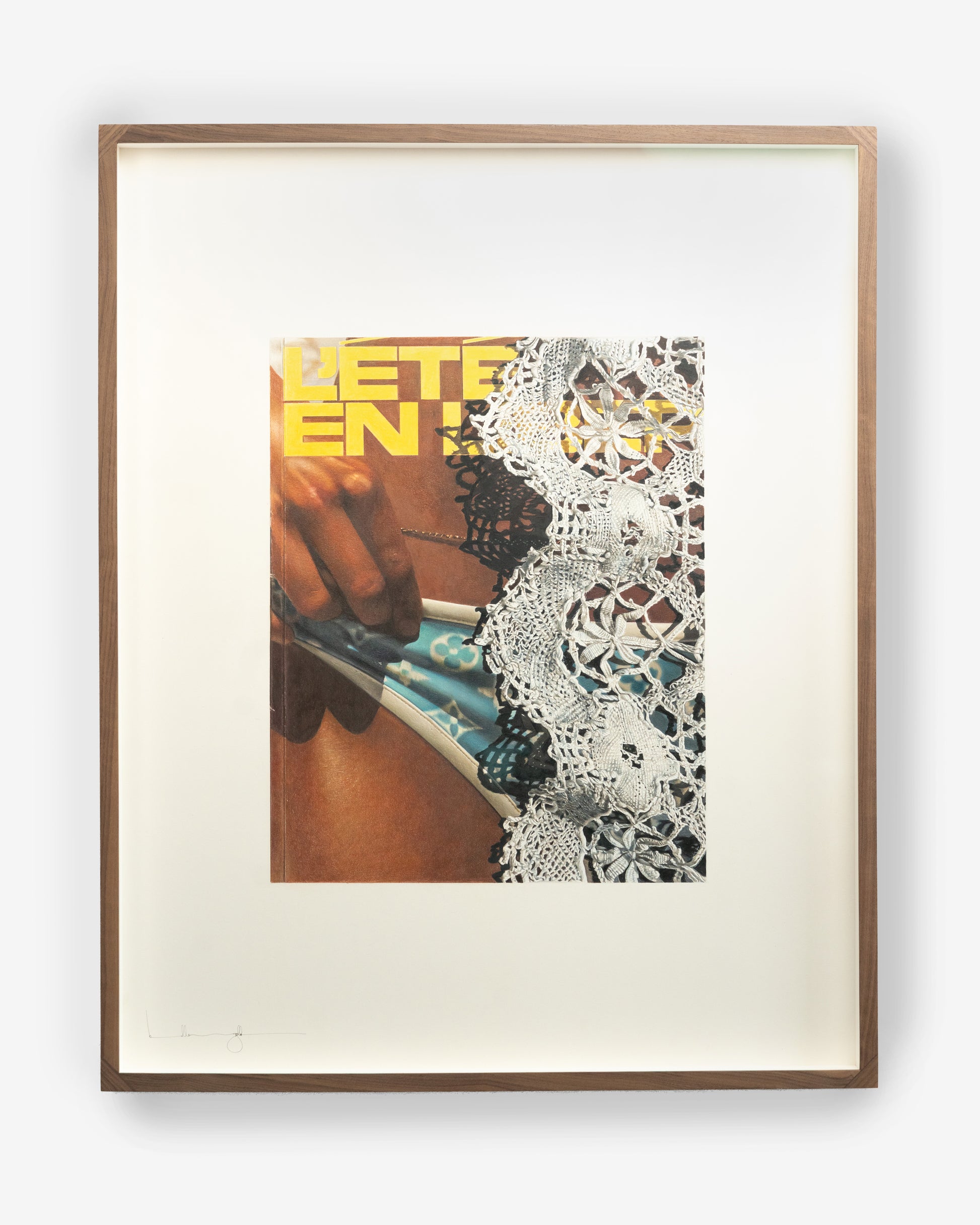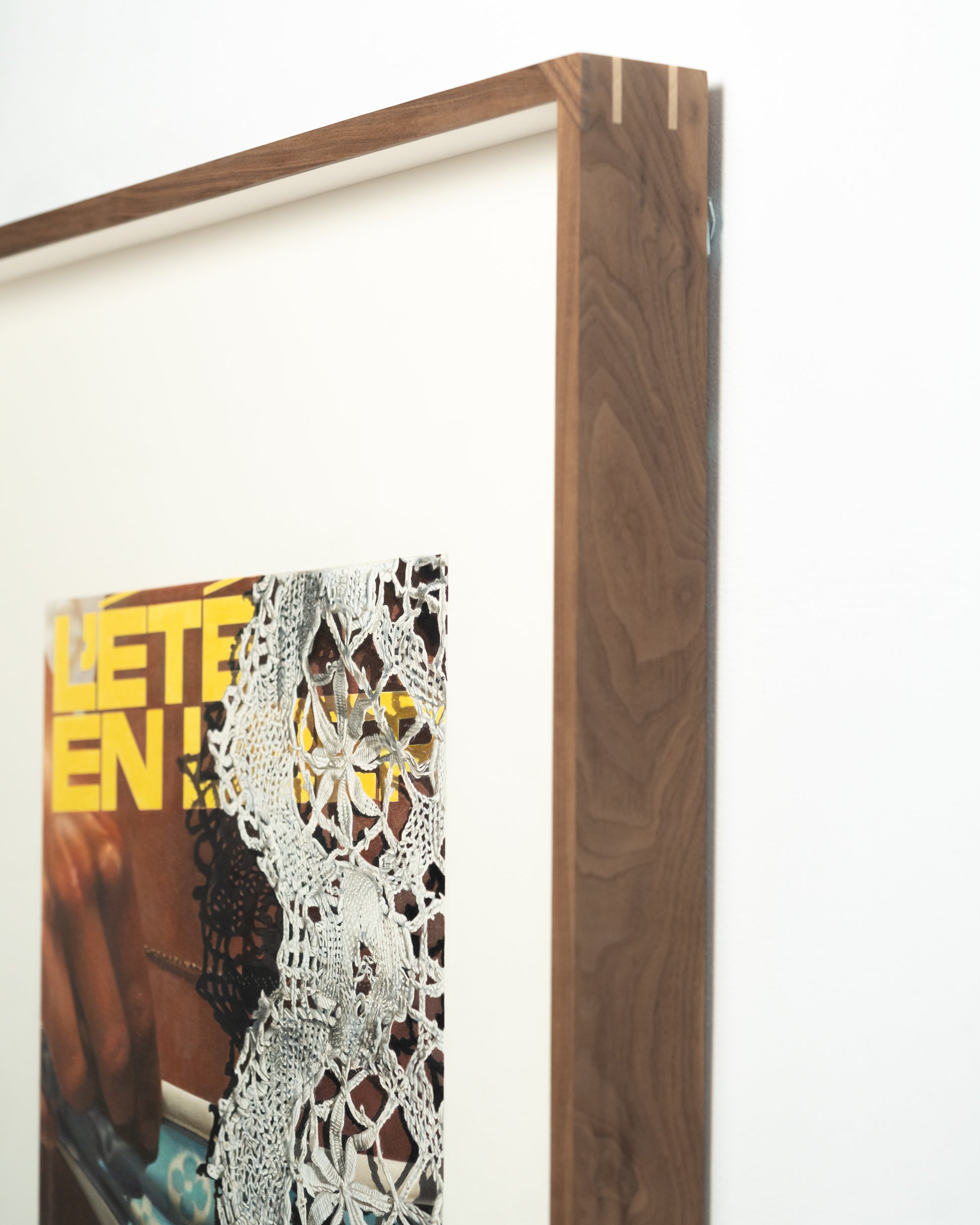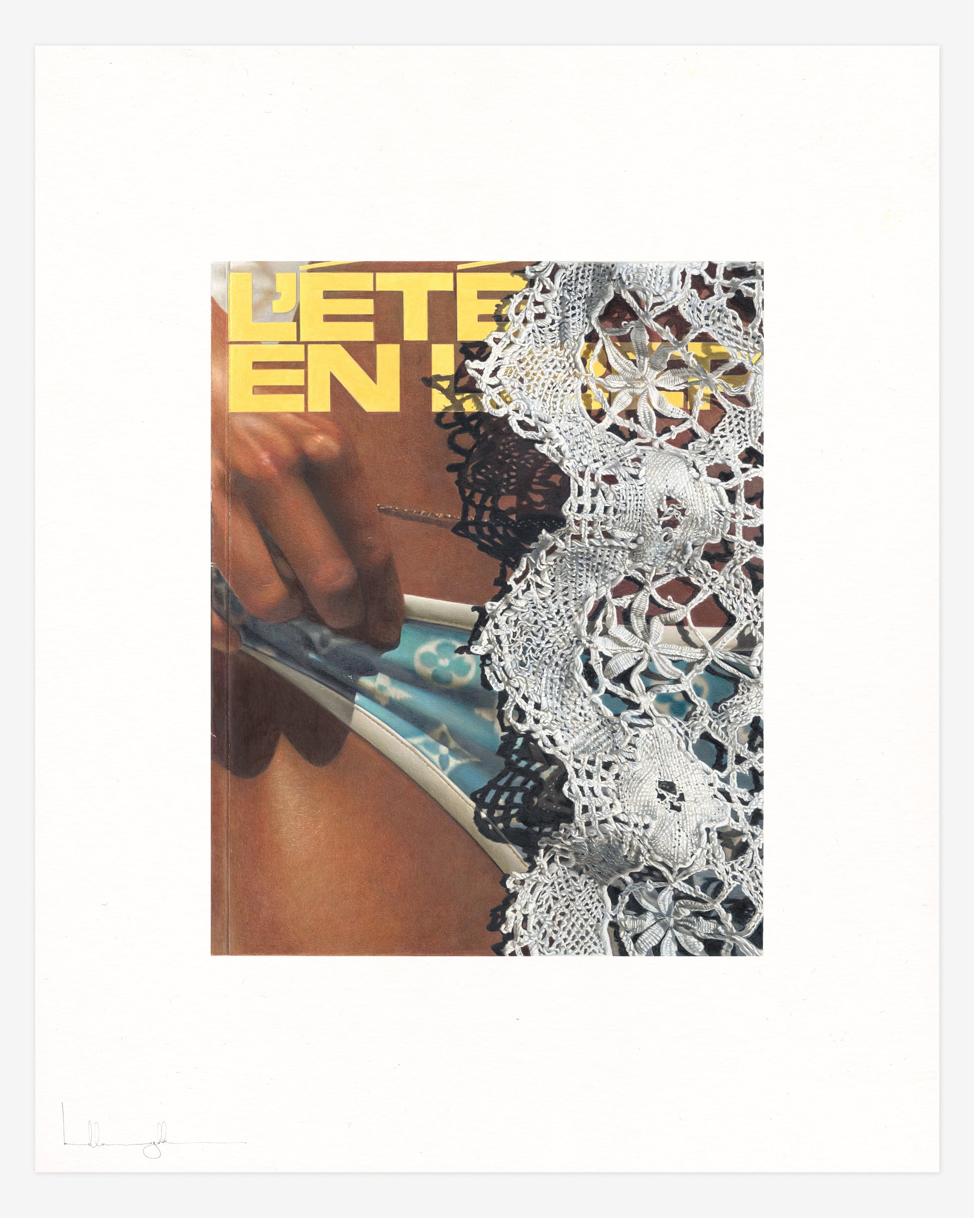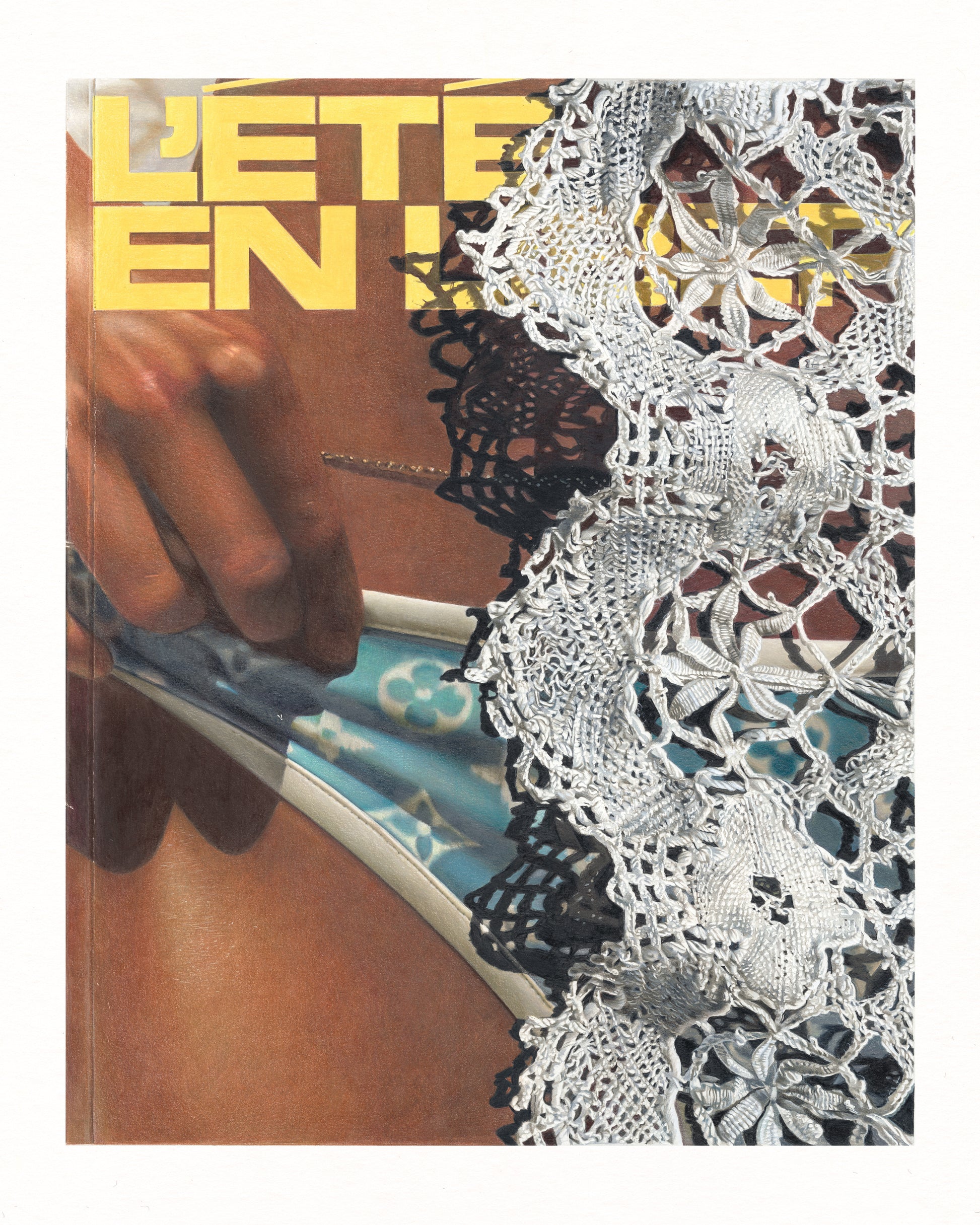 Needlework, the housemaker's pastime. Decorative, ungroundbreaking, pre-Internet. A representation of a worn apron and a warm oven, blankets that cover the seats of sofas and wall hangings with punny messages. Needlework is for non-achievers. For idle hands with idle time. There’s a nervousness that can be identified with the tiny knots and obsessive repetition. Here I am, pointing the finger and recoiling, yet I find myself spending more time than it takes to crochet, re-presenting the needlework through my pinpoint pencil work. I am in the same position as the women I observe. I am The Mother. Undeniably, although I try. And there lies the whole meaning. I am a part of the collective I don’t associate with. I am no different. The same question of craft over art. What makes it art? I layered lacework over the Vogue cover by Henrik Purienne. Purienne photographs naked women in their twenties. Smoking icy bongs, tanning and perhaps something as busy as brushing their hair or lighting up a cigarette next to a pool somewhere hot, dry and slow. Purienne’s photographs are the exact opposite of motherhood. They are selfish and time-ignorant. They are my youth, more in feeling than visual representation, unfortunately. He depicts time as one long and never-ending afternoon. A nap that you wake from, not caring when you drifted off or when you’ve awakened. Time, still. That isn't a concept in motherhood. Time is slipping steadily and infuriatingly out of our hands and out of control. There are no irresponsible long afternoons into sunset. It’s bath time, bedtime for them, tidy-up time and bedtime for us. Vogue, in which the Purienne photograph made the cover. French Vogue. Representative, of course, the desire that is now within you. The how-to live a better life, a life more considered, more chic. It’s all the things I looked up to in my 20s. All the things I wanted to be before I became a mother. And then you realise the bullshit in it all. It’s not that I care less about being chic - in ways, I think it’s even more. But I think there’s something in motherhood where you realise the innate knowing we have. I need to be told less. Somehow, we all know how to do the most difficult thing a human is faced with - go on, raise another! And we just do it. We can just do it. How subversive. The layering of my lessons atop the lessons I used to want to be told. My drawing of the needlework is the reality over the old dream. The reality over the fantasy. Everyone’s fantasy, men and women alike. It's even more for the women as we try to squeeze our way into the men's fantasy. A mother is not a man's fantasy. Their own mother, maybe, in some twisted, Oedipal way. But as a woman becomes a mother, the hierarchies shuffle. You are less important. You must stick around, sure, but I cannot be the bong-smoking, time-ignorant, responsibility-less girl anymore. I will try, but it will not work. I will instead put my efforts into something worthwhile. Needlework, no - raising children.