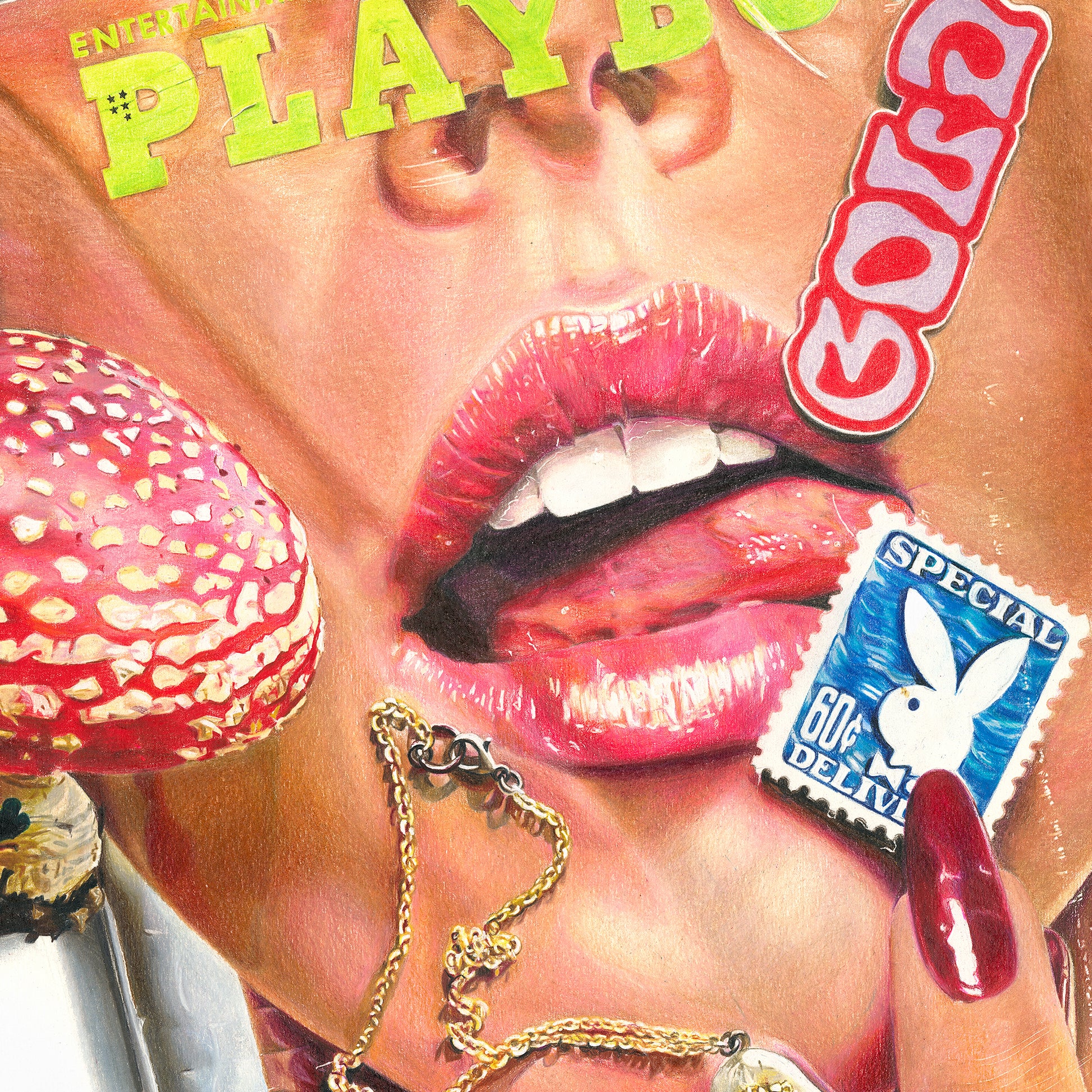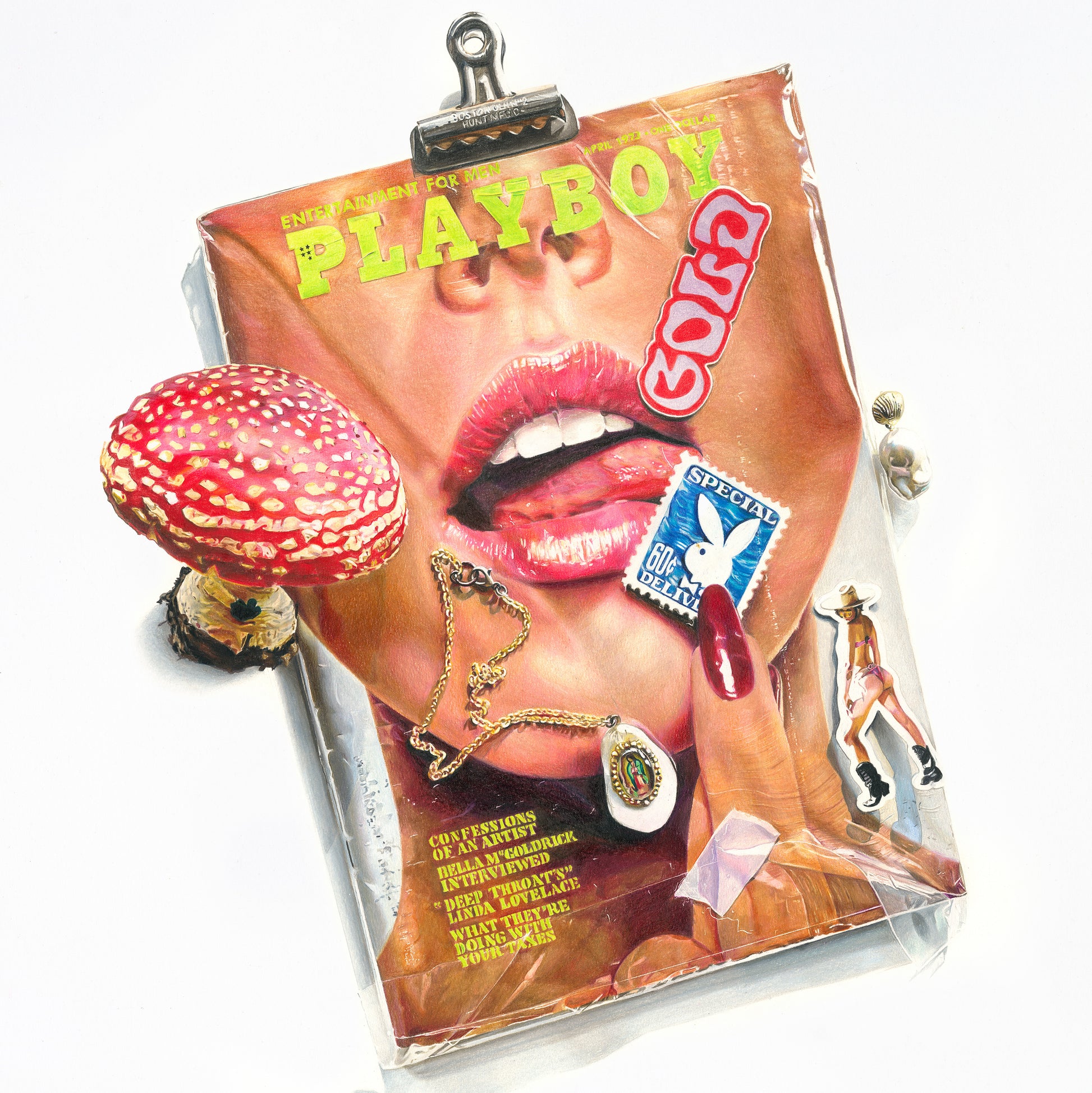 Something about a plastic sleeve over a magazine gets me going. It does my job for me. Preserving the trash from the past. But scrapbooked this time with pieces of my collection. Mushrooms picked in the Coloradan Rockies during summertime. Pearls from Copenhagen and the Mother Mary shell necklace from Nicaragua. I’ve expressed my hoarding hands and how they bring things into the fold. Here is the fold. Pieces of a summer, also pieces of suggestion.  I’m not one to leave too much to the imagination with all these explanations and detailed titles. This one’s for the boys, but by proxy, it's actually for the girls.