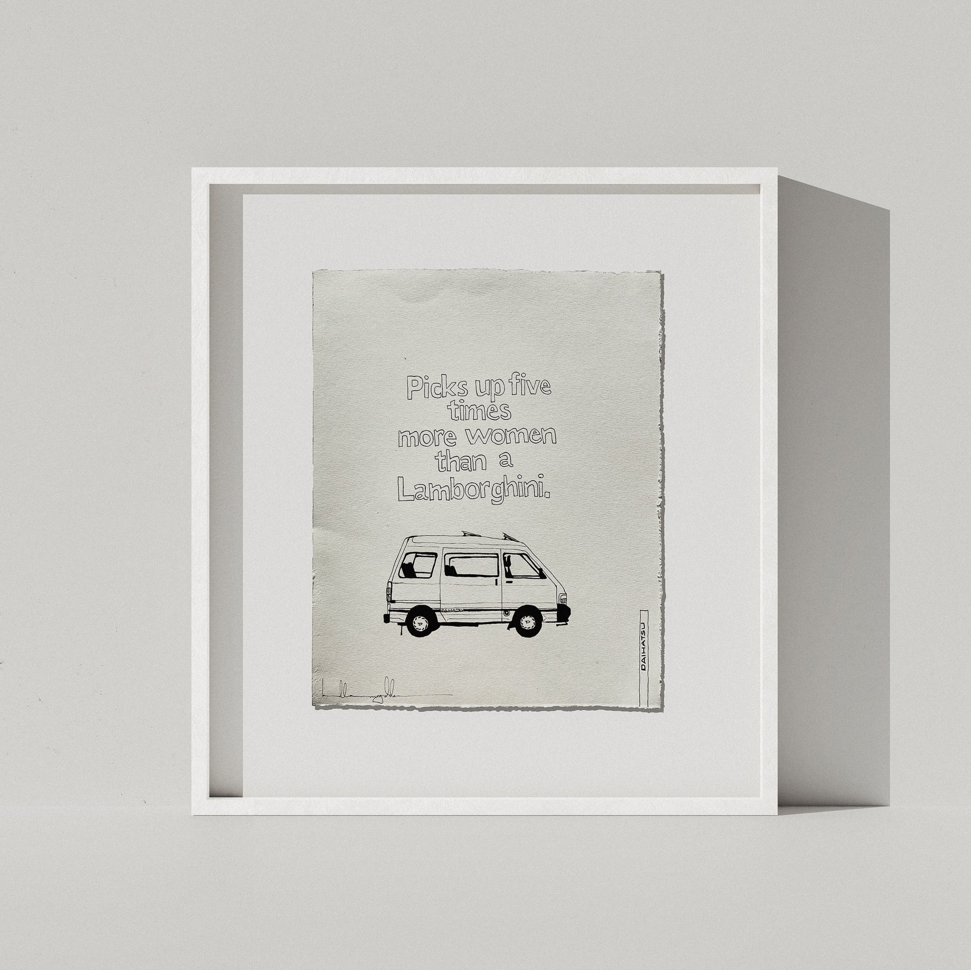 (2022) I die over a minivan, especially the mini mini ones, like the Japanese Kei Vans, or this little one because it’s so small on the page. I will not take credit for this copy - that's from the original ad that I straight up copied (copied the copy?!) - with my flair of original wonky lines though! Daihatsu Hijet ad from 1996