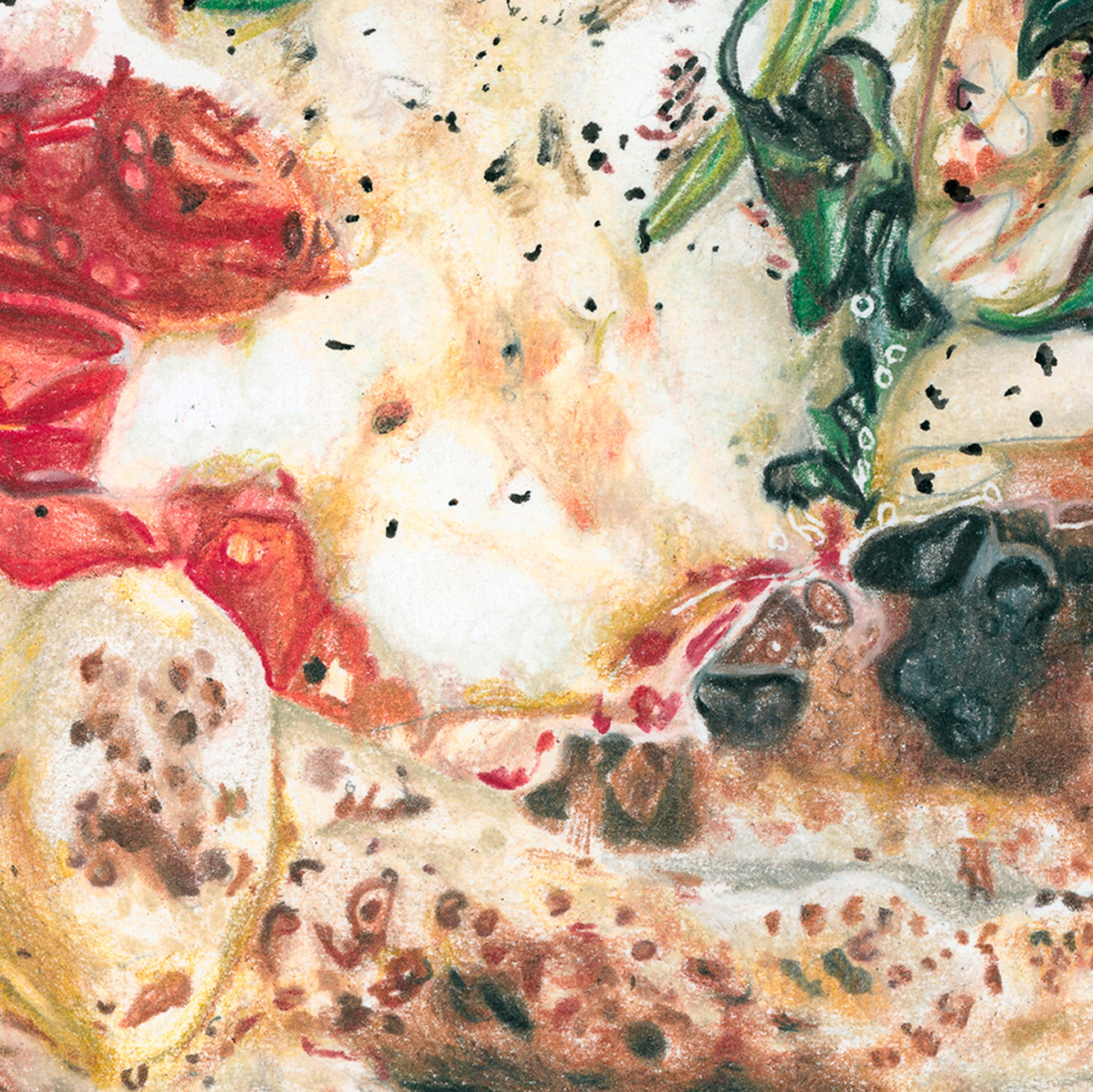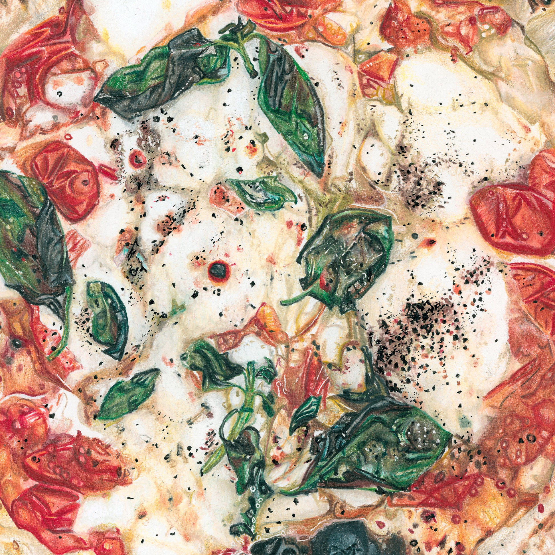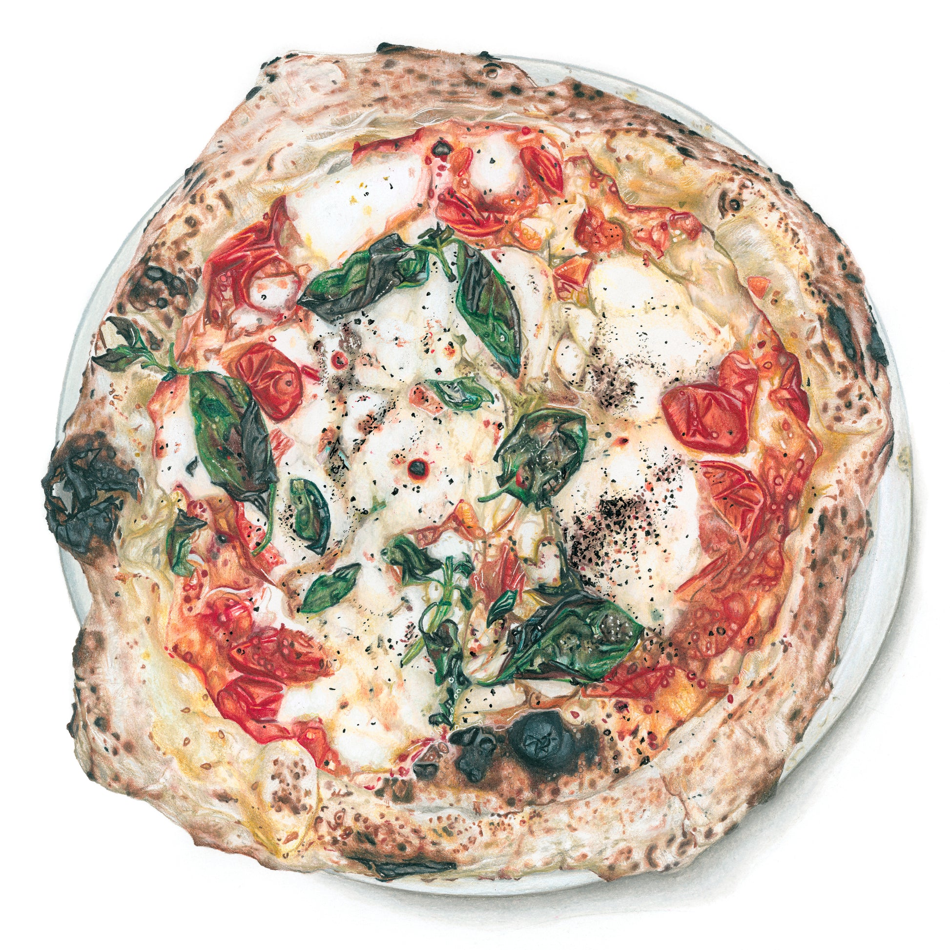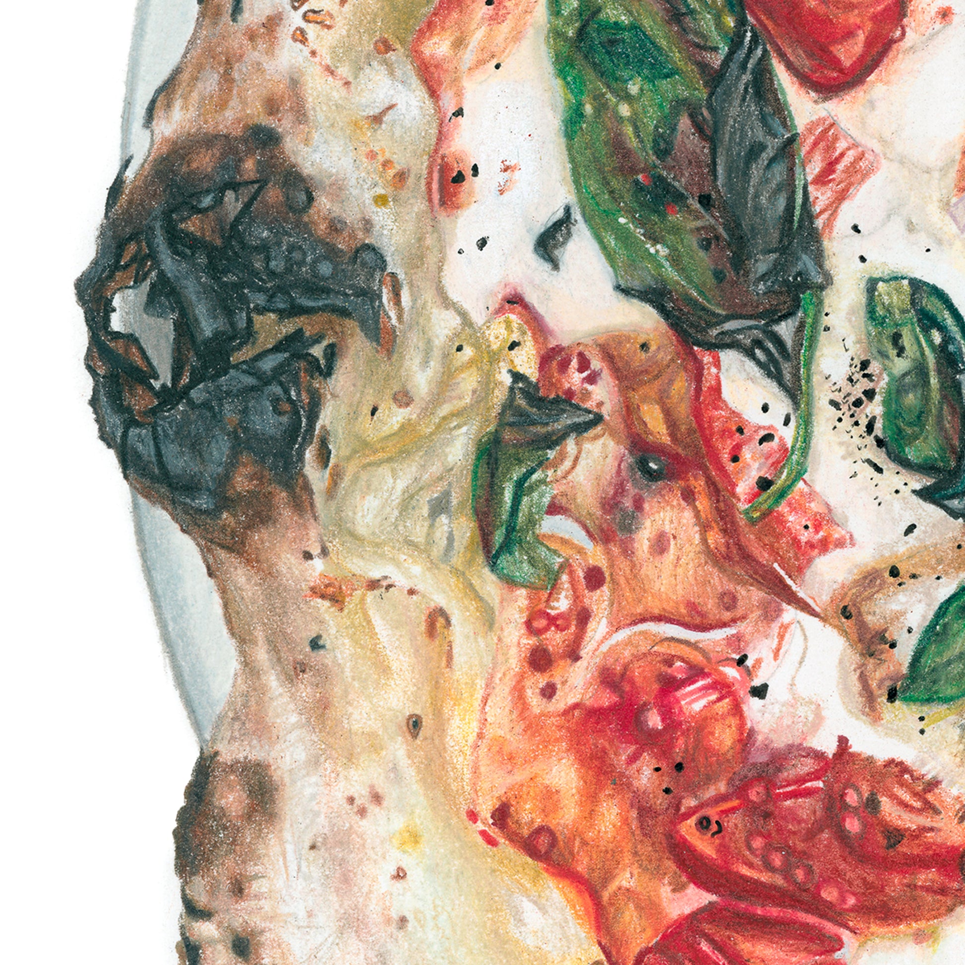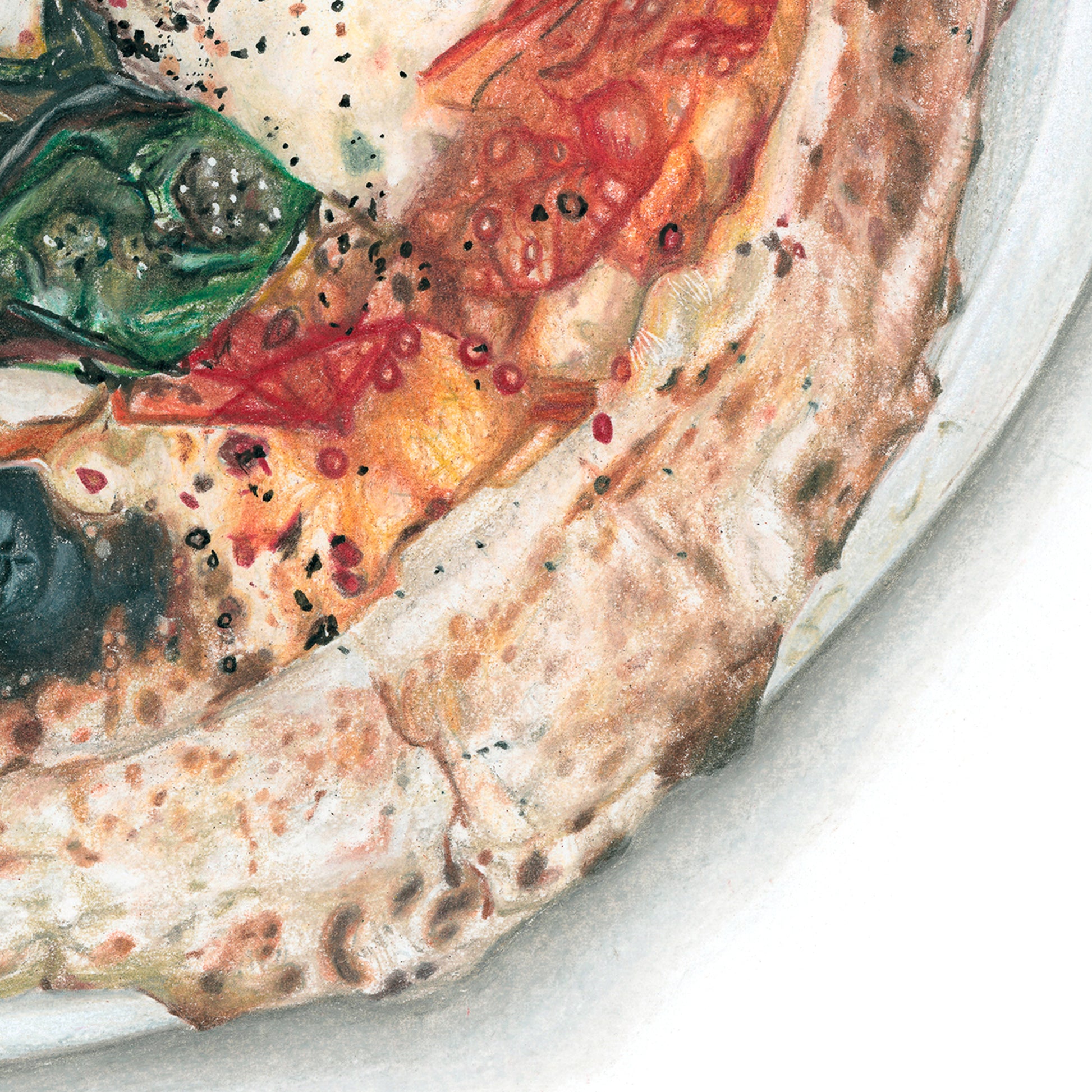 Lunch in Napoli, the acclaimed birthplace of pizza, we visited a few days after Napoli FC had won the Serie A league. The city was wrapped, from balcony to balcony, with blue and white ribbons. What a mad place. What energy. Southern Italy–raw and untrimmed, chaos filling the streets lined by 13C Renaissance and baroque architecture. Like the pizza, a beautiful mess surrounded by centuries of perfected craftsmanship. Dough that chews like marshmallows, tomatoes that taste of long days in the sun and a lunchtime atmosphere that makes you eat fast and smoke later.