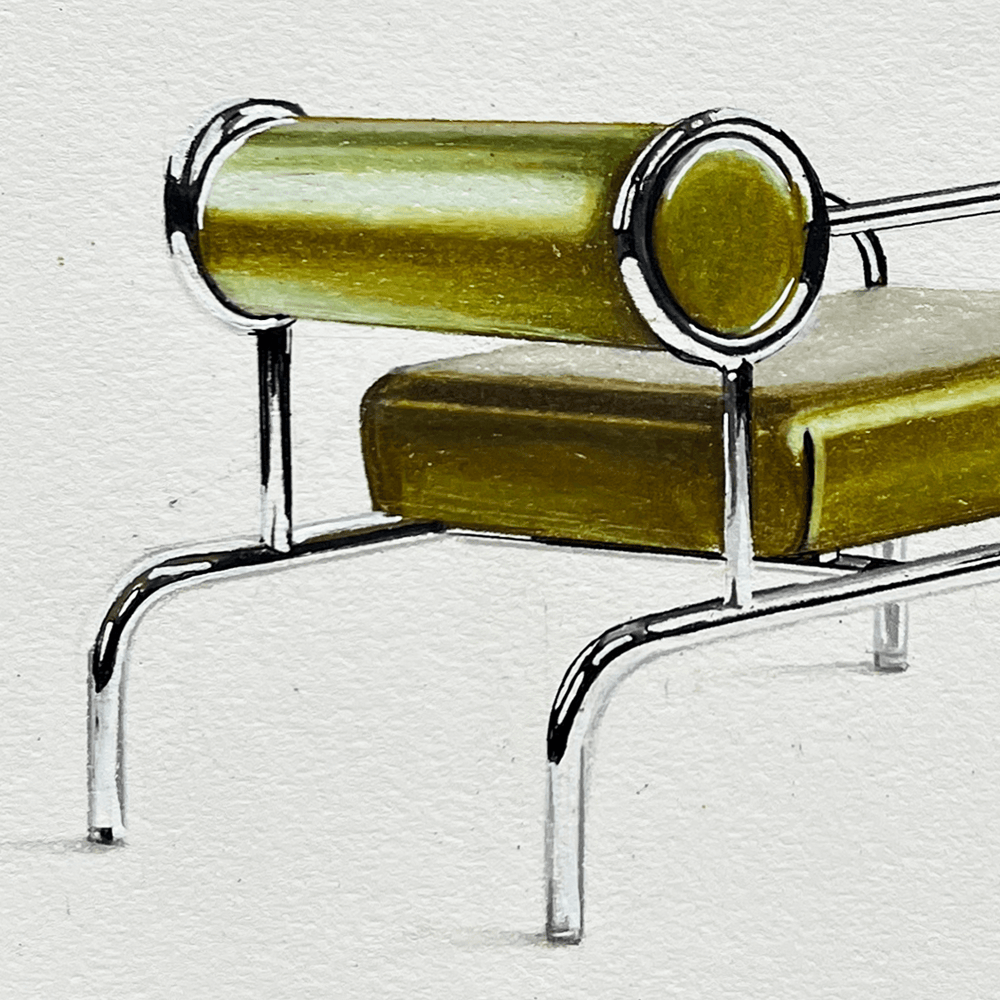 (2022) I kept wanting to find the "real" name of this chair, with such a significant design I was craving a memorable name. But perhaps that's all part of it's quality of design, it doesn't need to announce itself this chair, you will notice it anyway. Japanese in its minimalism, but still 80's with its chrome.