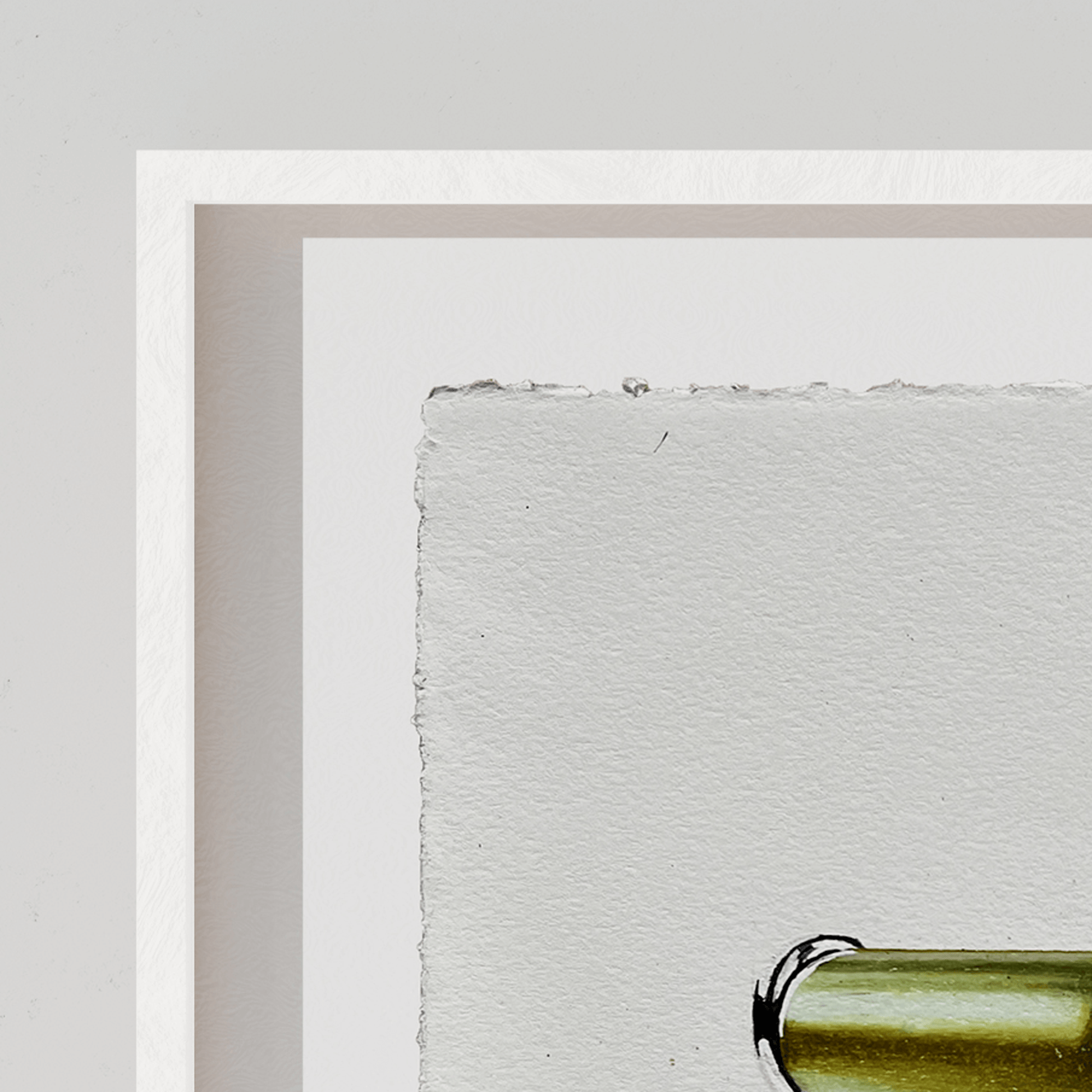 This is my favorite way to frame, the white wood is simple and clean and the shadow box/floated mount makes the paper appear floating, not touching the back board nor glass.