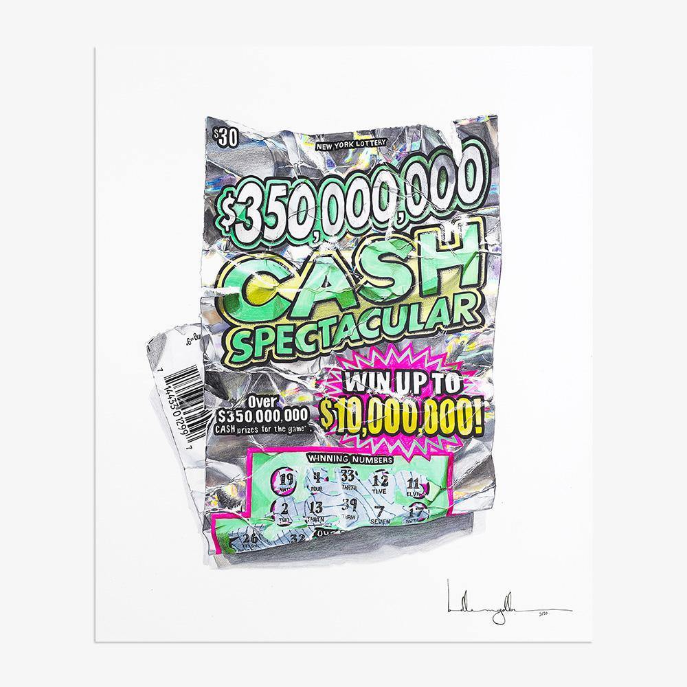McGoldrick’s photorealistic still-life drawings capture the intimacy and life of the objects we wear, eat, and handle on a daily basis. These used, pre-adored, and often discarded objects are instilled with a sense of curiosity and sentimentality towards the people that once utilized these now forgotten artifacts of daily life. McGoldrick’s depiction of lotto scratch-offs found crumpled on the streets of New York City, conveys how these forlorn objects, once ripe with the potential of delivering the American dream, are now memorialized, with every crease and crevice filled with the possibility of what could have been.
