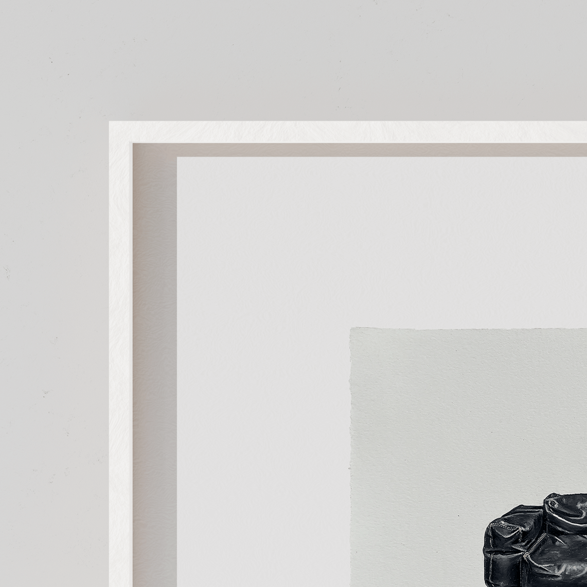 Framed within a white shadow box frame with a floated mount and 2 or 3.5 inch reveal. With museum grade UV fitering plexiglass.