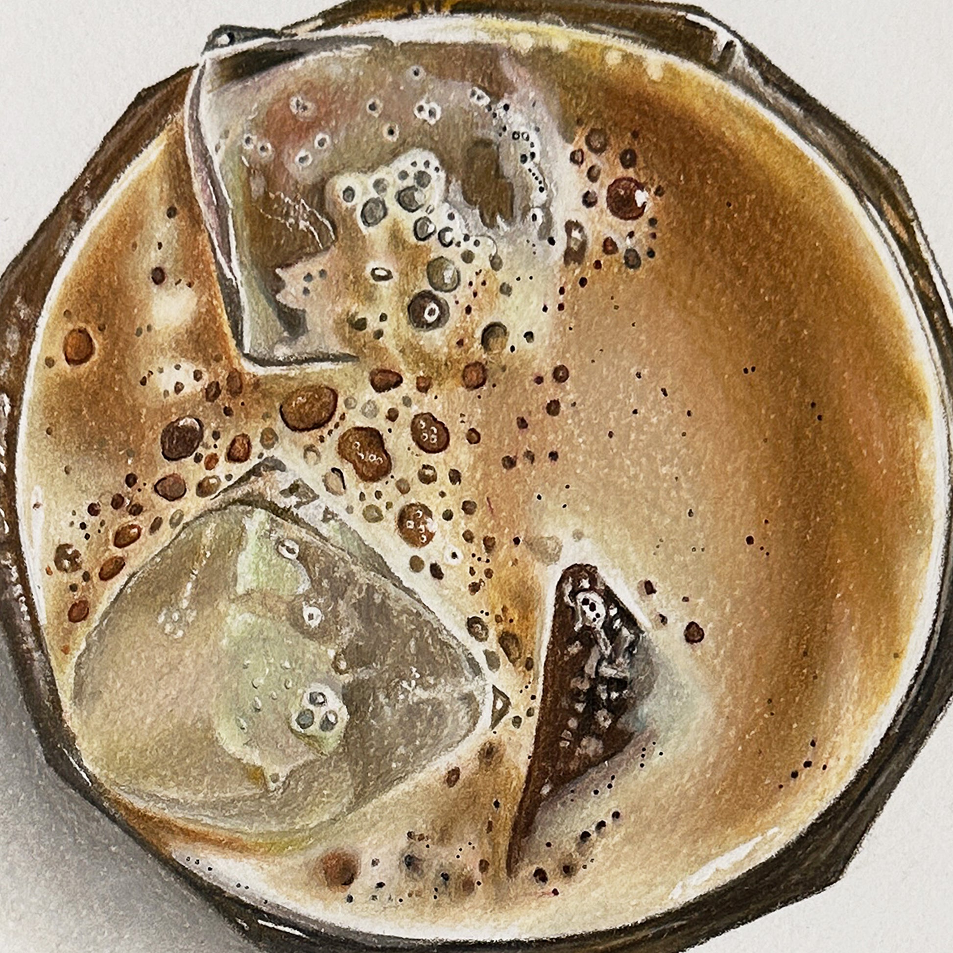 (2023) My first attempt at bubbles was my Filthy Rich soap suds drawing from 2022. This was my second attempt, and we love to see improvement! This piece also opened up a new door to the intricacies of ice. Have a look next time - how many colors do you see? Enough to drive you blurry-eyed to draw.